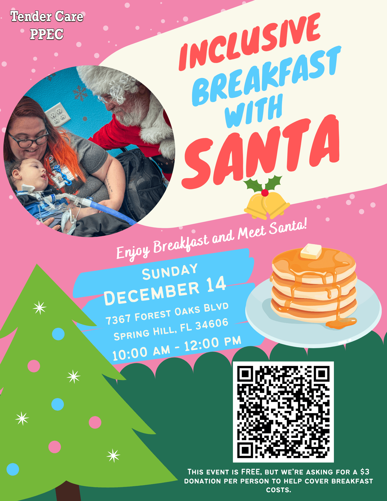 We are honored to offer a place where everyone can feel the magic of the season. We cannot wait to welcome you to Tender Care PPEC’s first ever Inclusive Breakfast with Santa and share in this beautiful new tradition.